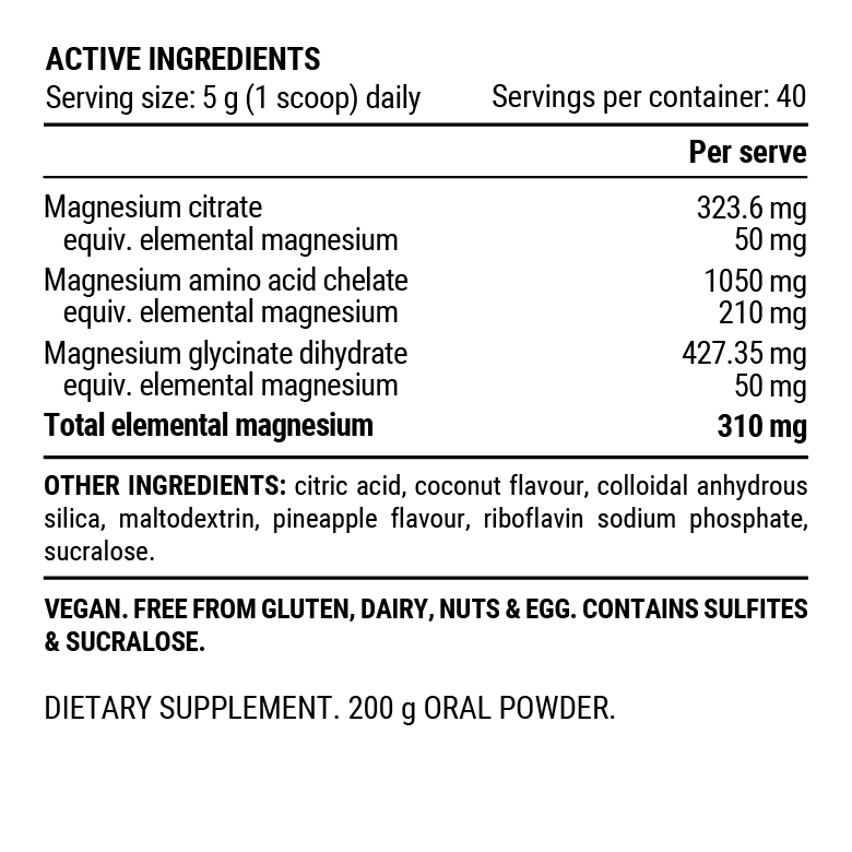 Pillar Performance Triple Magnesium Powder - Pineapple Coconut 200g