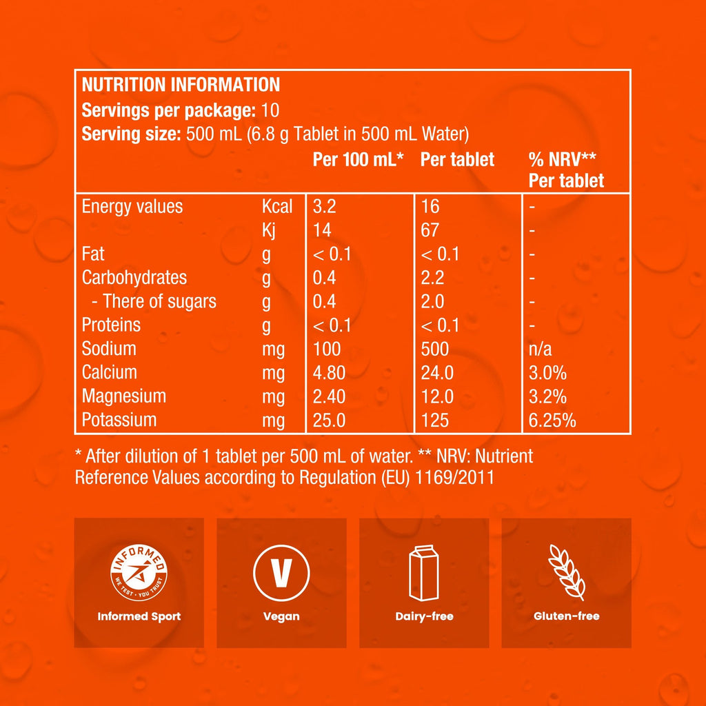 The carefully balanced pH of 5.56 and specific osmolarity ensure optimal absorption and palatability, while the mild citrus flavour helps reduce flavour fatigue during long, intense efforts in hot conditions.